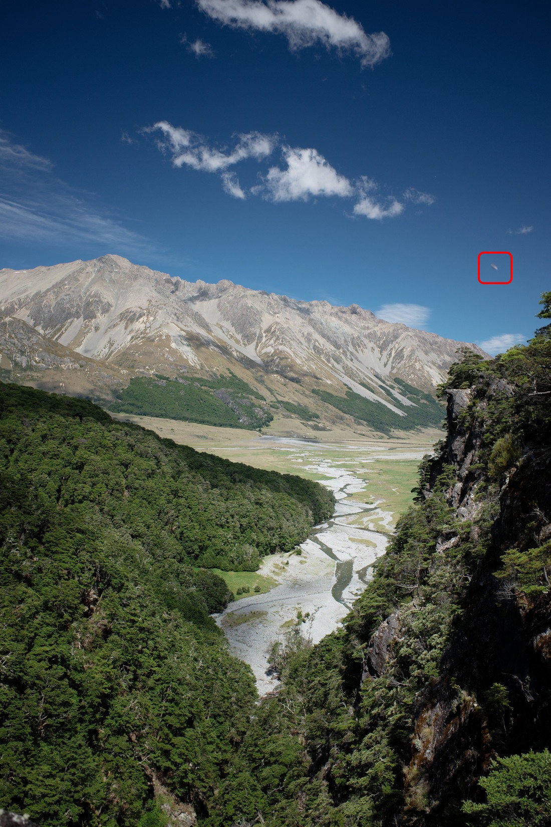 This is the very same photo as the photo in my other post about today. It was a lovely day where a bunch of us went up the Ahuriri Valley to walk the Canyon Creek Route. I know this valley quite well as I have been here numerous times and fly my glider in this area all the time when flying from Omarama. The only things that would fly in this valley are gliders, occasionally paragliders and there might be the odd powerplane, but that’s really it. Now something about photography. I regularly use the High Dynamic Range (HDR) technique when making photos. What it comes down to is that you make for example 3 photos in very short succession: 1 that is normally exposed, 1 that is overexposed (brighter than normal) and 1 that is underexposed (darker than normal). You then let some clever software take the best parts of the 3 photos and merge them together. That is how the very photo above was made. So it’s made out 3 separate photos. Below you will see those 3 separate photos that for this occasion I have adjusted to all show the same brightness, that is: I have decreased the brightness of the overexposed photo and increased the brightness of the underexposed photo so they all look the same as the normally exposed photo. This so comparison of the photos is easier