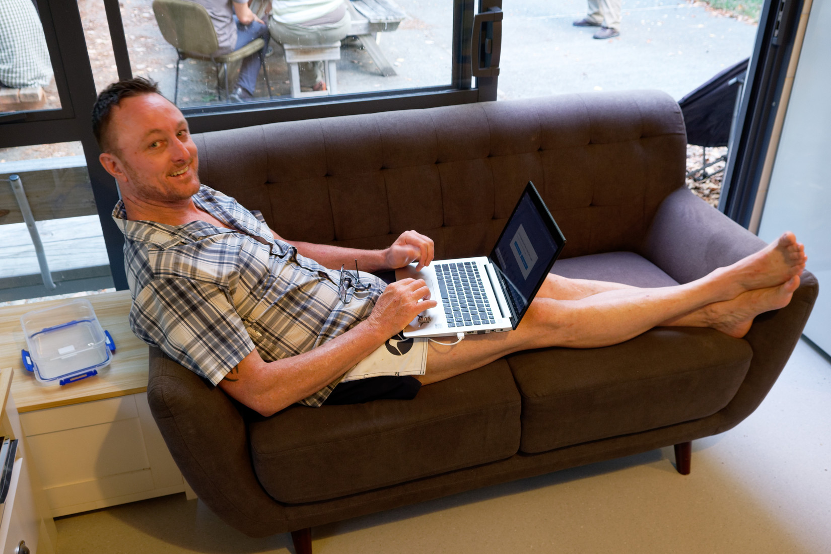 Carl, doing stuff on his laptop, likely he’s on some dating site